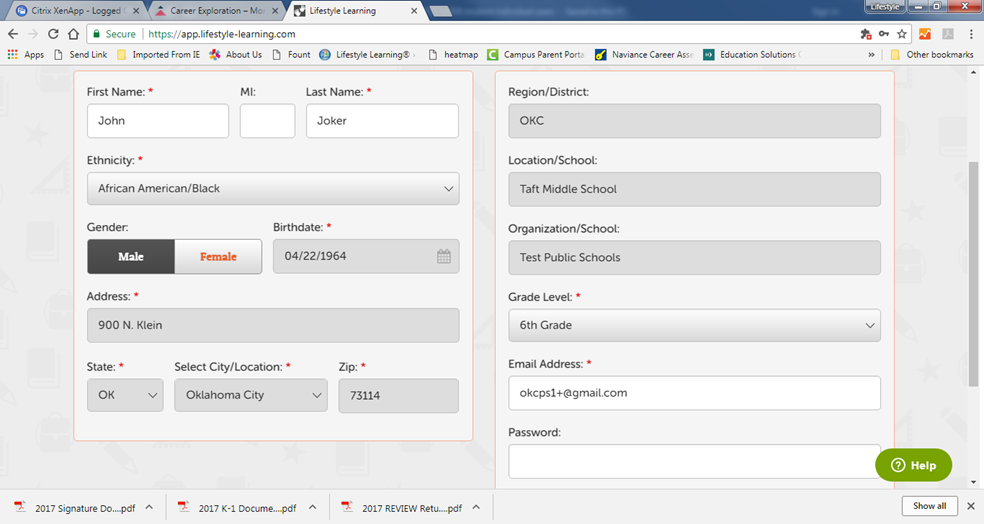 For Org Student accounts, this information defaults from the organization the student is attached to and cannot be changed. For Individual accounts, allows you to change your state. |